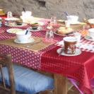 Les petits déjeuners sont servis dans l'ancien four à pain (four banal voûté) typique du Causse. Les produits sont locaux et fabriqués "maison".